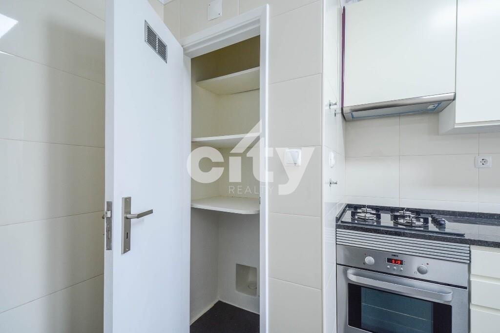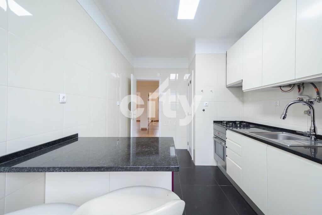 Situado num 3.º andar, o apartamento destaca-se pelo ambiente moderno e funcional. A cozinha, prática e atual, encontra-se equipada com forno, placa, exaustor e micro-ondas, dispondo ainda de móveis preparados para encastre dos restantes eletrodomésticos. A pequena bancada para refeições ligeiras cria um espaço informal perfeito para pequenos-almoços ou refeições rápidas, enquanto a despensa acrescenta organização e apoio à arrumação.